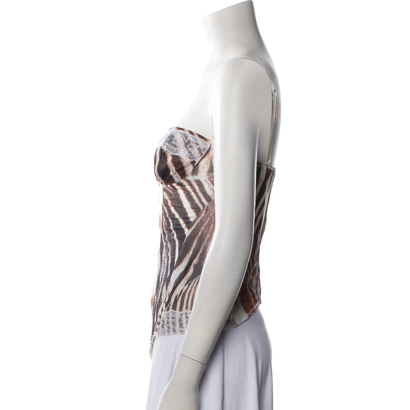 ROBERTO CAVALLI ANIMAL PRINT 2000S WHITE CORSET TOP