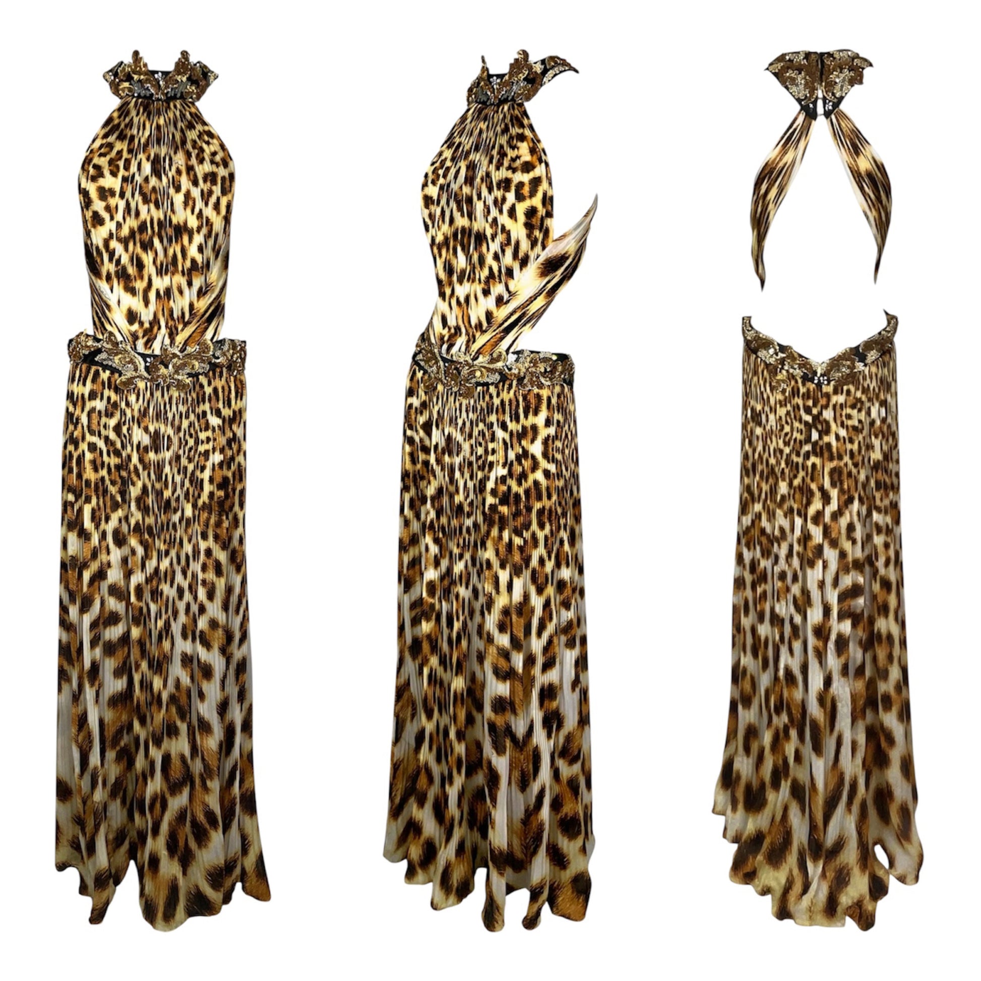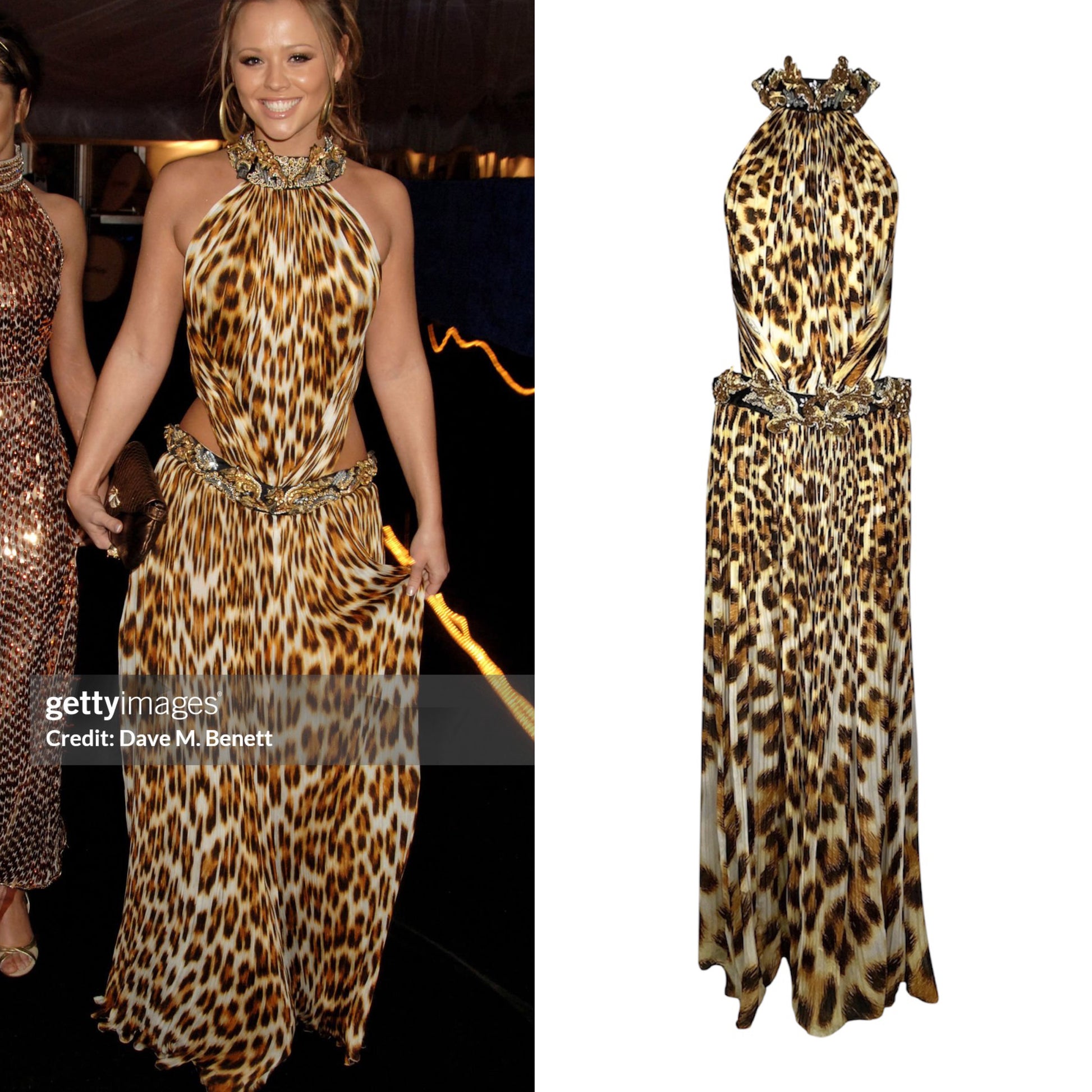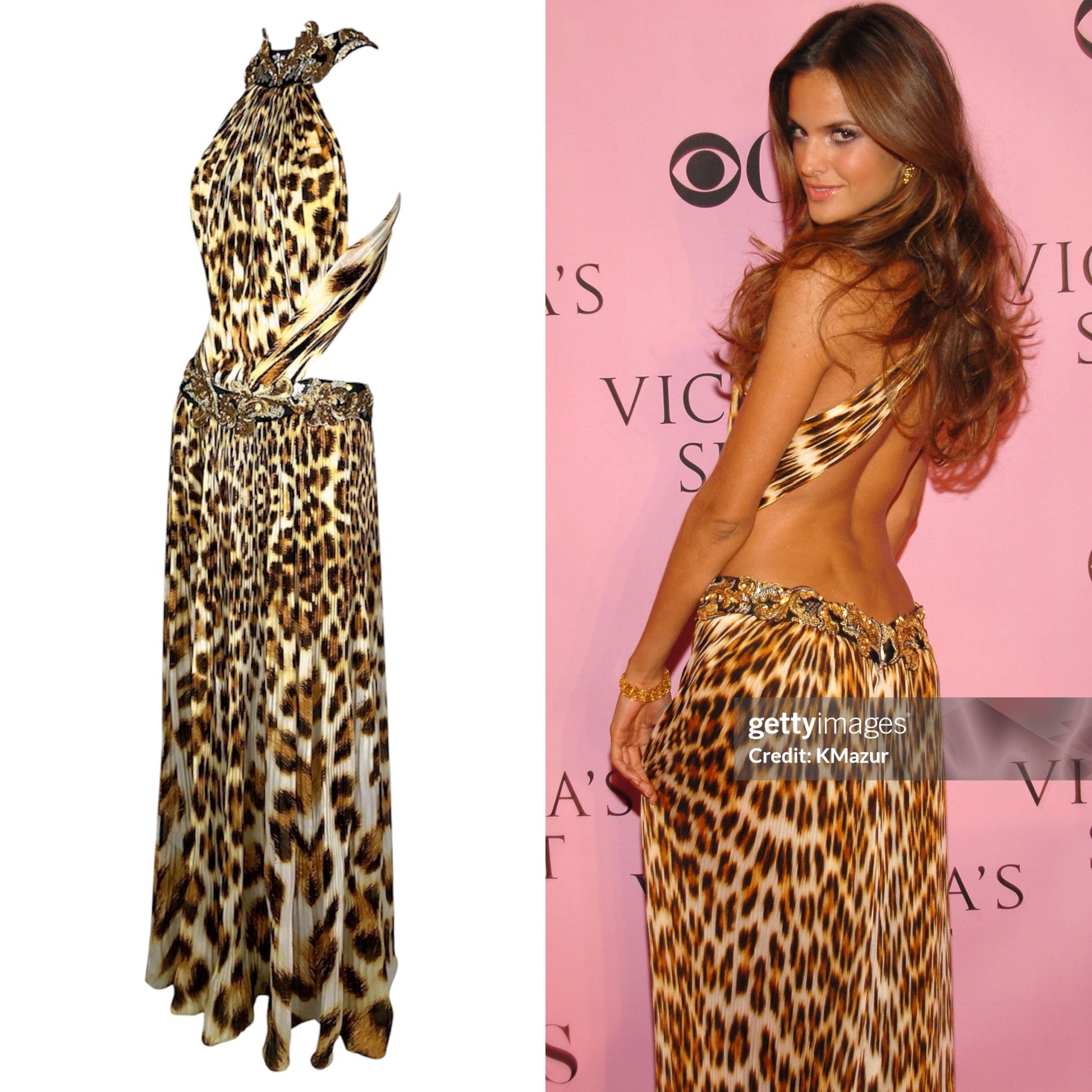 Roberto Cavalli S/S 2007 Runway Backless Embellisshed Leopard Print Y2K Dress