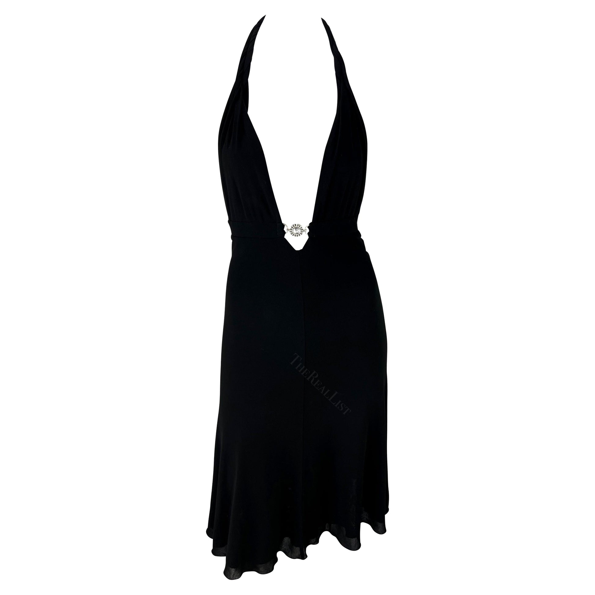 VERSACE 2006 BLACK HALTER BACKLESS MIDI DRESS